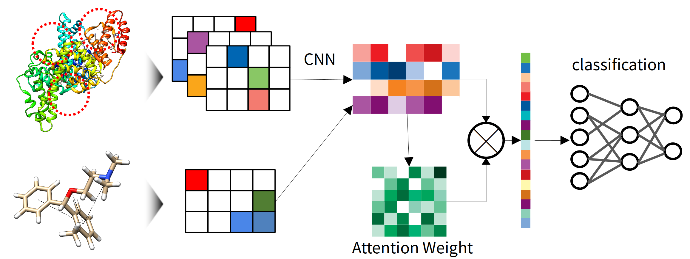 Target 단백질과 화합물의 입체 정보를 통해 딥러닝 기반 약물 가상 탐색 모델이 인식할 수 있는 APM으로 변환하여 사전학습된 모델이 상호작용 가능성을 제시한다.